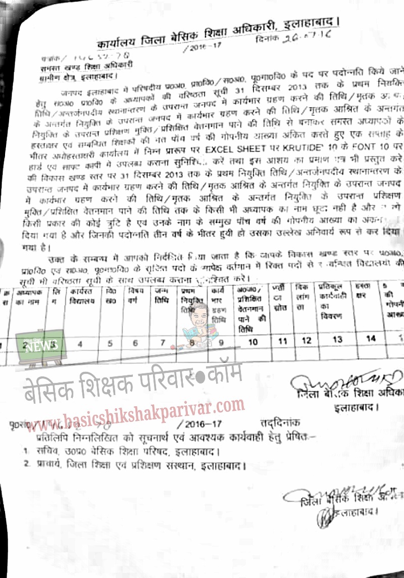 मुख्यपृष्ठशासनादेश इलाहाबाद : परिषदीय शिक्षकों का विवरण एक्सेल सीट पर दिए जाने के सम्बन्ध में बीएसए इलाहाबाद का पत्र देखें जुलाई 28, 2016
