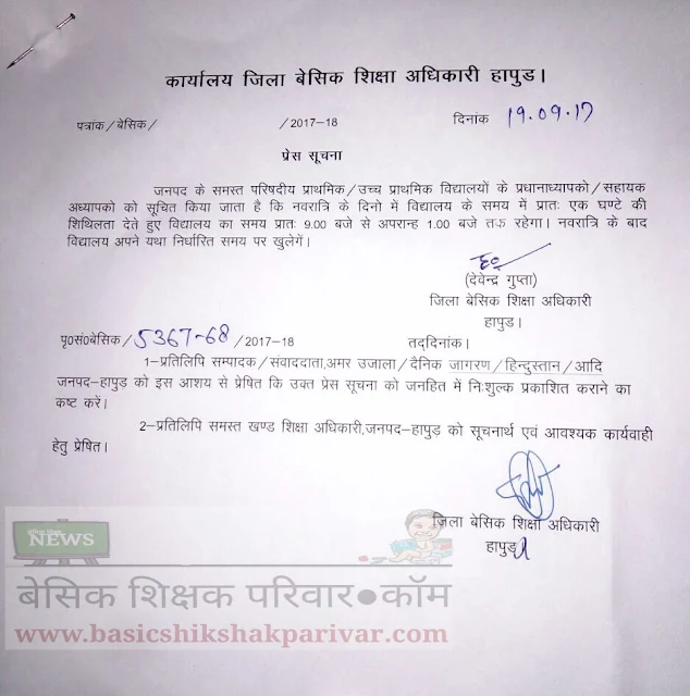मुख्यपृष्ठविद्यालय समय हापुड़ : जिले के परिषदीय शिक्षकों को नवरात्रि के दिनों में विद्यालय समय में 1 घण्टे की मिली शिथिलता, अब 9 से 1 बजे तक खुलेंगे स्कूल, byEditor •सितंबर 20, 2017 Tags: विद्यालय समय शासनादेश हापुड़ Govt Order HAPUR SCHOOL TIME Facebook Twitter