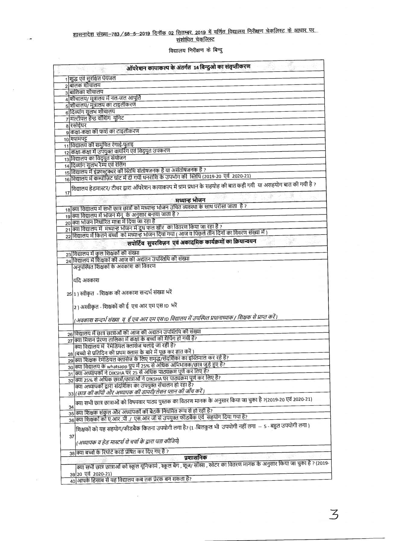 मिशन प्रेरणा तकनीकी फ्रेमवर्क के तहत जारी स्कूल निरीक्षण हेतु प्रेरणा एप पर अपलोड की गई संशोधित चेकलिस्ट के उपयोग के सम्बन्ध में आदेश जारी - primary school inspection prerna app