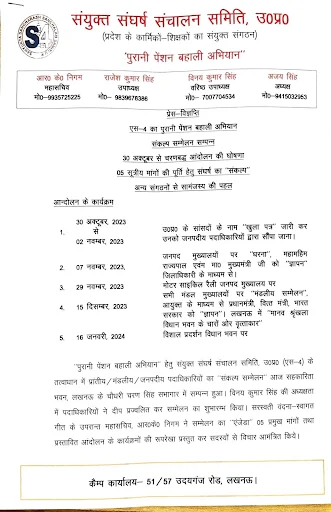 लखनऊ। प्रदेश भर में पुरानी पेंशन बहाली के लिए कर्मचारियों का आंदोलन तेज हो रहा है। संयुक्त संघर्ष संचालन समिति (एस-4) ने शनिवार को आयोजित संकल्प सम्मेलन में इसके लिए 30 अक्तूबर से चरणबद्ध आंदोलन की घोषणा कर दी है। साथ ही ओपीएस समाप्त करने, संविदा, मानदेय, आउटसोर्सिंग कर्मचारियों के नियमितीकरण का भी मुद्दा उठाया है।